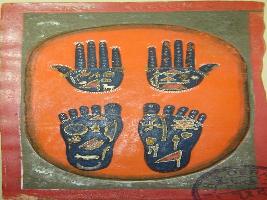 | Description / विवरण | Miniature painting depicting the hand print and foot prints of Ekaling ji. |