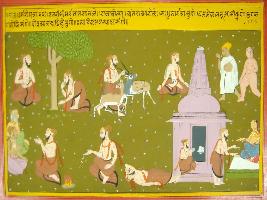 | Description / विवरण | Miniature painting based on Mahabharat - Rajdharma parva depicting telling Bhim that he will follow the path of honesty and eat fruits, moves with deers and doing yagna two times in a day as a part of his penance. |