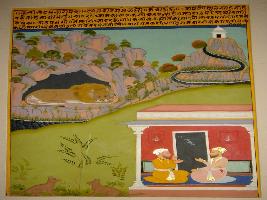 | Description / विवरण | Miniature painting based on Kalila Damana. They are planning to go and meet king Lion and become important member of his kingdom. The painting has Mughal influence. |
