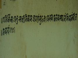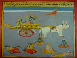 | Description / विवरण | Miniature painting based on Shri Bhagwat Gita. It depicts Krishna preaching Arjun that he is the motion of earth. He is god, friend, dissolution, affect and all things emerges from him. |