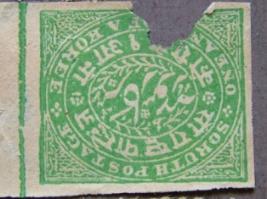 | Description / विवरण | Sorth State Stamp having portrait. One Anna and Akor Akoree has been written. |