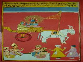 | Description / विवरण | Miniature painting based on Shri Bhagwat Gita. It depicts Krishna preaching Arjun that whenever a man gets failure he should try for next time and keep it doing until he get success. |
