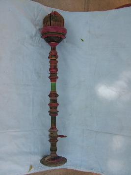 | Description / विवरण | It is a wooden decorative object. It is having two lotus carved in wood on stand. The stand has circular base and a painted and decorated shaft. |