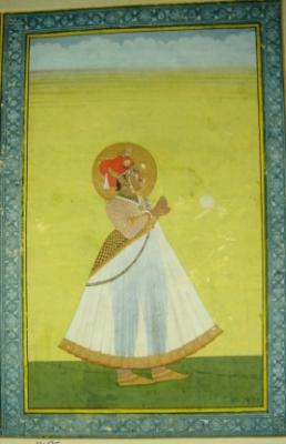 | Description / विवरण | Full size portrait of Maharaja Sawai Pratap Singh in standing position facing left. He is wearing beautiful turban and adorned with jewels. |