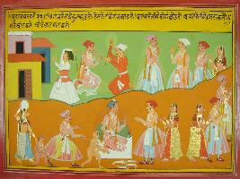 | Description / विवरण | Miniature painting based on Mahabharat - Udyam parva depicting that one should sacrifice his relaltives for city. He should sacrifice cities for a State. In the someway one should tie relations for spirit and should add many for long life. He should give money to his wife and wife should in return give peace to husband. |