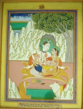 | Description / विवरण | Miniature painting depicting Shiva and Parvati seated together. Ganesh is seated on the lap of Parvati while Kartikeya is seated on lap of Shiva. |
