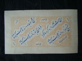 | Description / विवरण | This hand written epithet is written by Muhammad Amir baksh in Persian language. It is written in brown colour ink on white sheet. It deals about thirsty for water. |