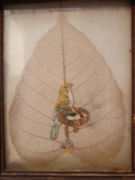 | Description / विवरण | Miniature painting painted on a Pipal leaf depicting a sparrow in nest. |