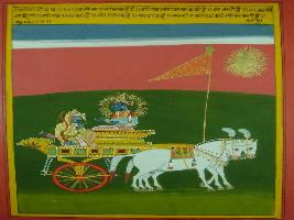 | Description / विवरण | Miniature painting based on Shri Bhagwat Gita. It depicts Krishna preaching Arjun that soul can never die or destroy us recreate. It cannot take birth, It is everlasting body can die but soul cannot be die. |