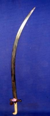 | Description / विवरण | Iron Nimcha sword having curved blade with a groove and hilt with ivory fittings. |