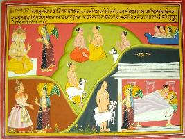 | Description / विवरण | Miniature painting based on Harivansha depicting sage Vaispayan telling king Janmejaya about the curse given to Urvashi by Brahma. Then she came on earth due to curse. |