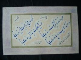 | Description / विवरण | this book written by Navad Amir in 1270 Hijri in Persian language. It deals with praising of god. It used for colour ink on golden and brown colour background. It has multi coloured border. It is . |