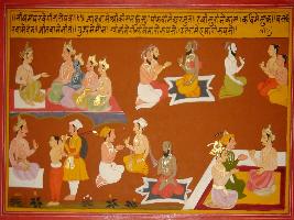 | Description / विवरण | Miniature painting based on Shri Bhagwat Gita. It depicts Krishna preaching Arjun that in Pandavas-Arjun, in rishi he is Vyas, in poet he is Suka in quality he is Mauna and Ram is he then Krishna says about his existence in all things. |