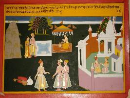 | Description / विवरण | Miniature painting based on Sanskrit drama Malti Madhav depicting Bhaobhuti going to start the drama Malti Madhav in the agnihotri yagna in Dakshin desh. |