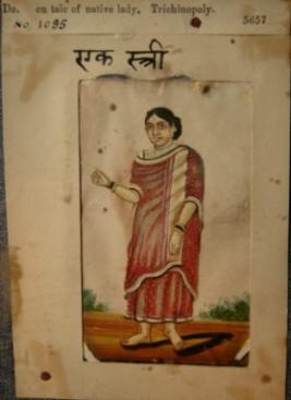 | Description / विवरण | Miniature painting on mica based on tale of a native lady depicting the lady in standing position and wearing a sari . |