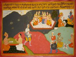 | Description / विवरण | Miniature painting based on Shri Bhagwat Gita. Some scenes of human life where Krishna says to Arjun about his existence in music women, cheating, guru, student etc. The painting scenes on this them. |