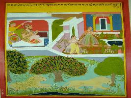 | Description / विवरण | Miniature painting based on Kalila Damana depicting mother of emperor moving out of court after talking to him. The painting has mughal influence. |