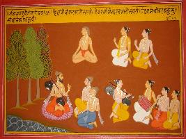 | Description / विवरण | Miniature painting based on Shri Bhagwat Gita. It depicts Krishna preaching Arjun that in trees he is Pipal, in Devtas he is Narad, in rishis he is Kapil, in birds he is Garuda. The painting depicts the above. |