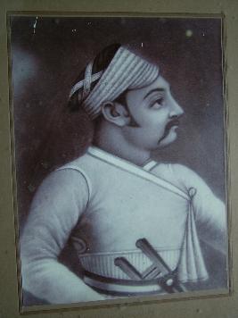 | Description / विवरण | It is a photograph of Maharao Madho Singh of Kotah. He is wearing a white tunic and decorated turban. A katar is hanging on his waist. He has long moustache. |