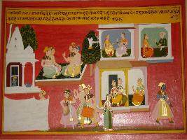 | Description / विवरण | Miniature painting based on Sanskrit drama Malti Madhav depicting Malti saying that her love is strong and spread over her whole body in the way poison spreads. She again says that nobody can save her from this disease. |