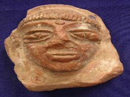 | Description / विवरण | Terracotta female head, with bindi on her forehead. It is well fired. Its facial features are very clear. |
