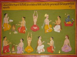 | Description / विवरण | Miniature painting based on Shri Bhagwat Gita. It depicts that by reading Vedas, doing penance, doing donation you get a high status in heaven. |