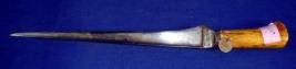 | Description / विवरण | Iron Peshqabz Dagger having straight pointed blade and ivory handle that has many cracks. |