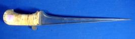 | Description / विवरण | Iron Peshqabz dagger having straight blade with grooves. The handle is made of ivory and without any decoration. |