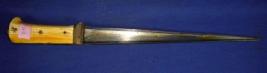 | Description / विवरण | Iron Peshqabz dagger with straight blade having grooves and a simple ivory handle. |