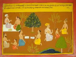 | Description / विवरण | Miniature painting based on Mahabharat - Vana parva depicting Lomash sage telling Yudhisthir about penance performed for Putra prapti . |