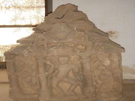 | Description / विवरण | A sculptured architectural fragment of a pillar depicting a dancing male figure in a niche. Both the sides have floral carvings. |