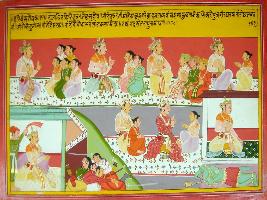 | Description / विवरण | Miniature painting based on Harivansha depicting genealogical decendancy of king Vitathur depicting his eldest son Sahotra, then eldest son of Sahotra - Mahiya etc. |