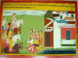 | Description / विवरण | Miniature painting based on Harivansha depicting story of Krishna and his family s arrival at home and his subject enjoyed that moments by playing instrument etc. It is incomplete painting. |