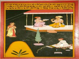 | Description / विवरण | Miniature painting based on Sarangadhar depicting two men in the upper part, under a roof with books in their hands. In the lower part, a black smith is depicted, engaged in his works. |
