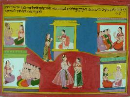 | Description / विवरण | Miniature painting based on Mahabharat - Adi parva. This painting is depicting Bhishma talking to Satyavati about the story of Raja Bali. Wife of Raja Bali went to Utkashya and there she gave birth to a son who later become king of Angbanga. |
