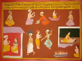 | Description / विवरण | Miniature painting based on Shri Bhagwat Gita. It depicts Krishna preaching Arjun that Brahma gyan is best knowledge and he who can abandon desires and anger will attain heaven and remain happy. |