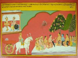 | Description / विवरण | Miniature painting based on Mahabharat - Virat parva depicting Janamjaya asking Vespayana about 13th year of exile of Pandavas. Vespayana told him that, Yudhisthir called all Pandavas and starts discussing about their hinderence in 13th year of exile which was Agyatvas. |