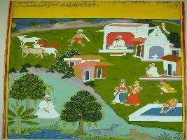 | Description / विवरण | Miniature painting based on Kalila Damana depicting the story of a Fakir who went to the city and he saw a gwala with lots of cow. Painting having Mughal influence. |