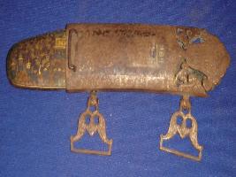 | Description / विवरण | Scabbard, made of metal having floral design on it at the tip and two hooks attached with it. |