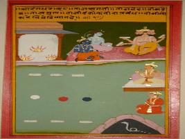 | Description / विवरण | Miniature painting based on Sarangadhar. Importance of number three is depicted. Three are fire burning, three are Vedas, three are gods three are world- heaven, earth and pataal lok hell . |