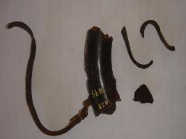 | Description / विवरण | Seeng, broken, blackened due to burning attached with a leather strap. It was probably hollow from inside to keep gun power. |