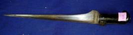 | Description / विवरण | Iron Peshqabz dagger having straight blade with wooden handle. |