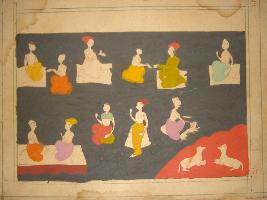 | Description / विवरण | An incomplete miniature painting that based on Kalila Daman story. Where Kalila telling a story of guru who is depicted in the other part of the painting in different postures. |