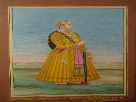| Description / विवरण | Full size portrait of Maharana Raj Singh II in standing position facing left holding a sword in his right hand while in left hand rests on his thigh. He is well dressed and adorned with jewels. |