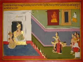 | Description / विवरण | Miniature painting based on Prithviraj Raso depicting some dancers and musicians coming to perform in front of king of Panga and before they start they worship Ganesh. |