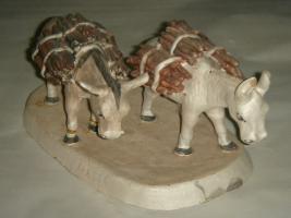 | Description / विवरण | Clay model of two asses, carrying wooden bundles at their back. One of them is of white colour while other has a black strip at its back. The asses are standing on flat oval base. |