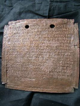 | Description / विवरण | It is an copper plate inscription dated VS1832,18 lines in Devanagri scripts have been written, 14 lines in horizontal pattern, one line in vertical pattern. |