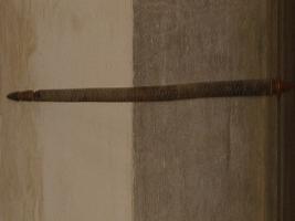| Description / विवरण | Spear pointed on both ends, it has ivory inlay works on wood. The both pointed ends are of metal and the body is of wood. |