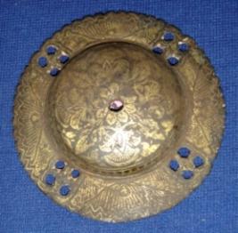 | Description / विवरण | Circular phool made of iron, having golden floral designs. There are 16th holes to fix it with shield. |