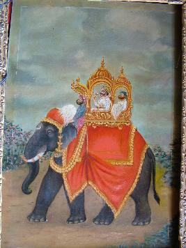 | Description / विवरण | This miniature painting represents Maharwal Gangaji along with a elephant rides and one attendant. Mahawat has been shown on an elephant. The elephant is having decorated cloth. Both in background and foreground flowers and grass have been shown. It is mounted in a metal and wooden from. |